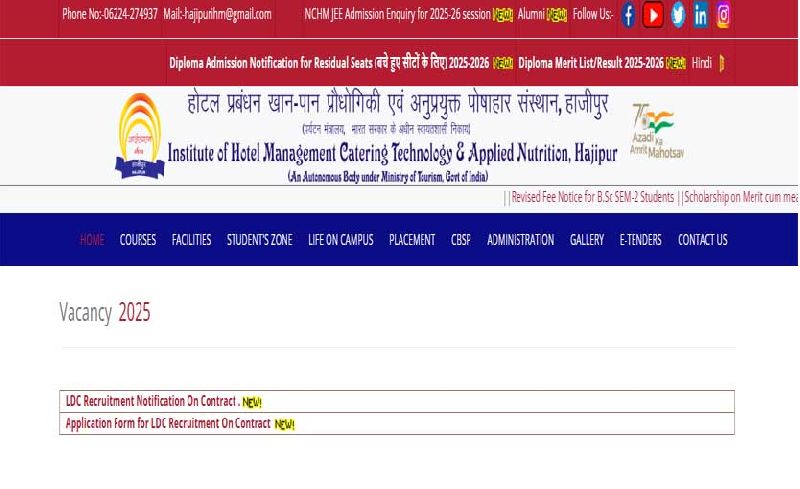 Recruitment Notification on Contract 1. Name of employer & Address Institute of Hotel Management Catering Technology & Applied Nutrition, Near Ramashish chowk, Hajipur, Vaishali-844102.